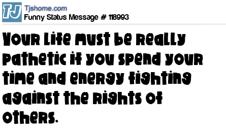X says Your life must be really pathetic if you spend your time and energy fighting against the rights of others.