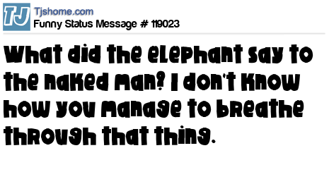 X is What did the elephant say to the naked man? I don't know how you manage to breathe through that thing.