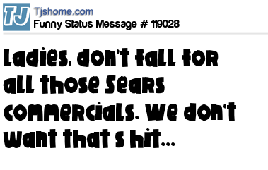X says ladies, don't fall for all those Sears commercials. We don't want that s hit...