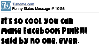 X It's so cool you can make Facebook PINK!!! said by no one, ever.