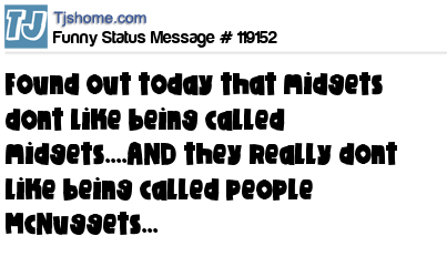 X is Found out today that midgets dont like being called midgets....AND they really dont like being called people McNuggets...