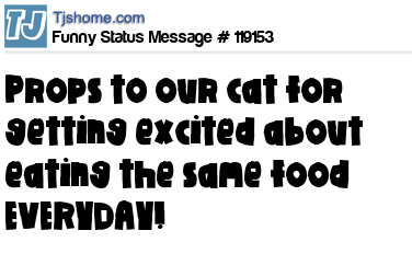 X is Props to our cat for getting excited about eating the same food EVERYDAY!
