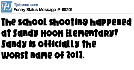X The school shooting happened at Sandy Hook Elementary? Sandy is officially the worst name of 2012.