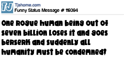 X says One rogue human being out of seven billion loses it and goes berserk and suddenly all humanity must be condemned?