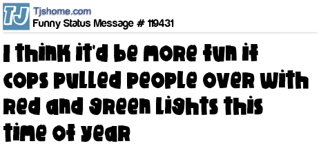- # 118507 In Dec, cops should take off the blue lights and make them green. It's more festive... Like getting pulled over by Santa.
