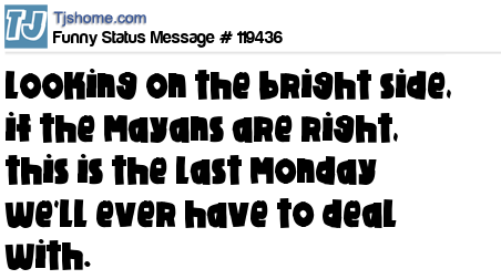 X is Looking on the bright side, if the Mayans are right, this is the last Monday we'll ever have to deal with.