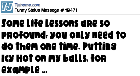 X says Some life lessons are so profound; you only need to do them one time. Putting Icy Hot on my balls, for example …