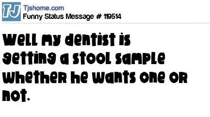 X  Well my dentist is getting a stool sample whether he wants one or not.