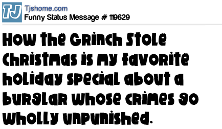 X says How the Grinch Stole Christmas is my favorite holiday special about a burglar whose crimes go wholly unpunished.