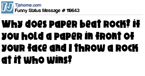 - # 58363 If you think paper beats rock...Hold a piece of paper up in front of your face and I'll throw a rock at it.