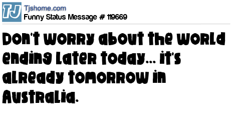 X Don't worry about the world ending later today... it's already tomorrow in Australia.