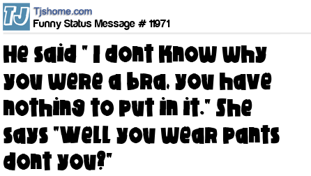 X He said " I dont know why you were a bra, you have nothing to put in it." She says "Well you wear pants dont you?"