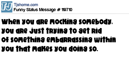 X When you are mocking somebody, you are just trying to get rid of something embarrassing within you that makes you doing so.