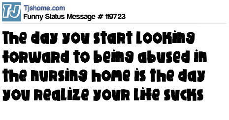 X says The day you start looking forward to being abused in the nursing home is the day you realize your life sucks