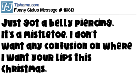 X says Just got a belly piercing. It's a mistletoe, I don't want any confusion on where I want your lips this Christmas.