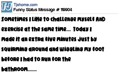 X says Sometimes I like to challenge myself AnD exercise at the same time....  Today I made it an extra five minutes just by squirming around and wiggling my foot before I had to run for the bathroom........