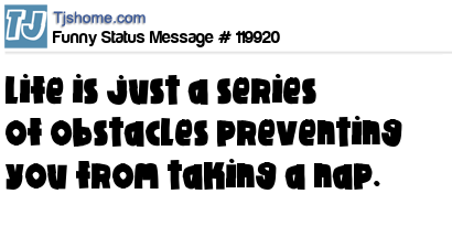 X says Life is just a series of obstacles preventing you from taking a nap.
