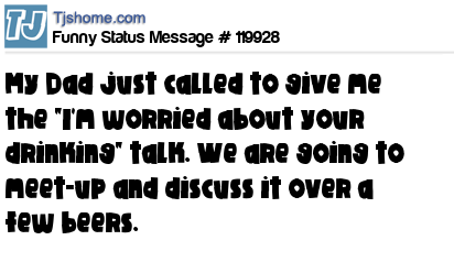 X says My Dad just called to give me the "I'm worried about your drinking" talk. We are going to meet-up and discuss it over a few beers.
