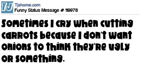- # 93327 I purposely cry while cutting carrots so onions don't think they're ugly or something.