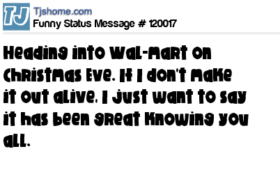 X says Heading into Wal-mart on Christmas Eve. If I don't make it out alive, I just want to say it has been great knowing you all.
