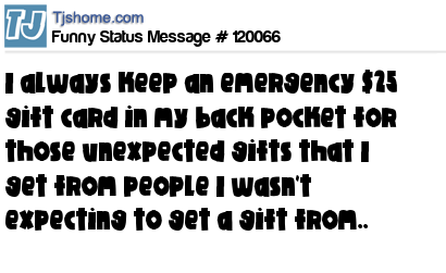 X  I always keep an emergency $25 gift card in my back pocket for those unexpected gifts that I get from people I wasn't expecting to get a gift from..