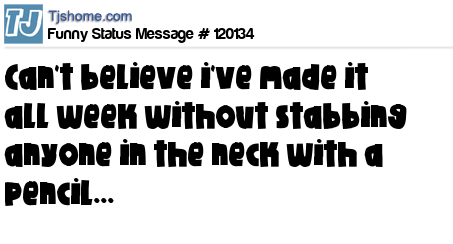 X Can't believe i've made it all week without stabbing anyone in the neck with a pencil...