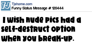 X is  I wish nude pics had a self-destruct option when you break-up.