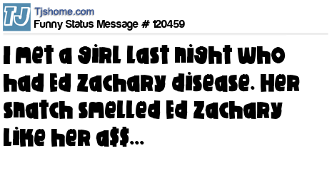 X says I met a girl last night who had Ed Zachary disease. Her snatch smelled Ed Zachary like her a$$...