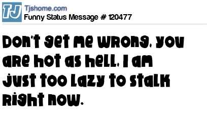 X says Don't get me wrong, you are hot as hell, I am just too lazy to stalk right now.