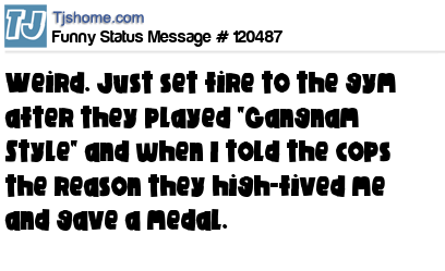 X says Weird. Just set fire to the gym after they played "Gangnam Style" and when I told the cops the reason they high-fived me and gave a medal.