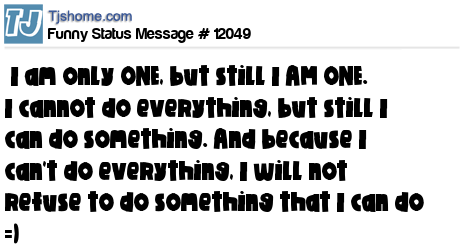 X says I am only ONE, but still I AM ONE. I cannot do everything, but still I can do something. And because I can't do everything, I will not refuse to do something that I can do =)
