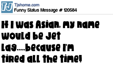 X If I was Asian, my name would be Jet Lag....because I'm tired all the time!