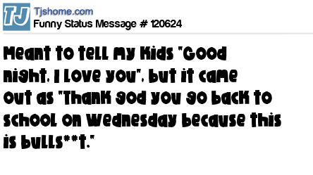 X is Meant to tell my kids "Good night, I love you", but it came out as "Thank god you go back to school on Wednesday because this is bulls**t."