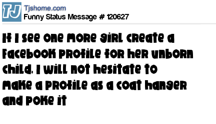 X says If I see one more girl create a Facebook profile for her unborn child, I will not hesitate to make a profile as a coat hanger and poke it