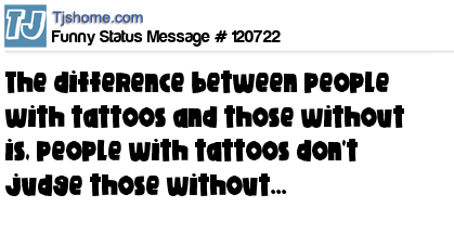 X The difference between people with tattoos and those without is, people with tattoos don't judge those without...