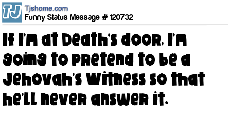 X says If I'm at Death's door, I'm going to pretend to be a Jehovah's Witness so that he'll never answer it.