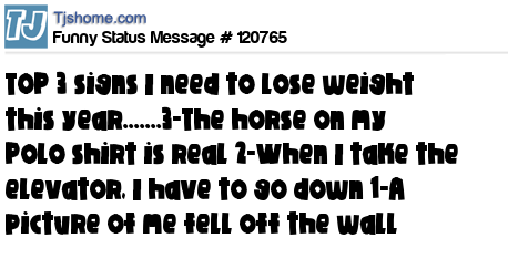 X is TOP 3 signs I need to lose weight this year.......3-The horse on my Polo shirt is real 2-When I take the elevator, I have to go down 1-A picture of me fell off the wall