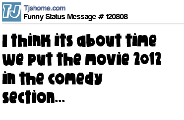 - # 119691 I think they should move the movie "2012" from the Science Fiction section to the Comedy Section.. It is already 21st of December in Australia and nothing happened.