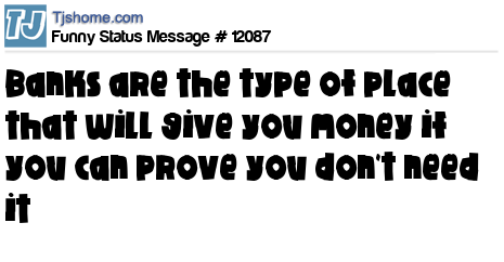 - # 3874 a bank is a place where you can lend money if you can prove you don't need it.