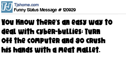 X is You know there's an easy way to deal with cyber-bullies: Turn off the computer and go crush his hands with a meat mallet.