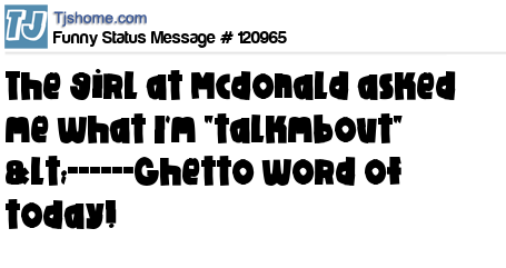 X The girl at Mcdonald asked me what I'm "talkmbout" <------Ghetto word of today!