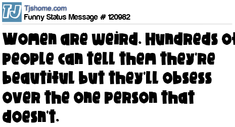X says Women are weird. Hundreds of people can tell them they're beautiful but they'll obsess over the one person that doesn't.