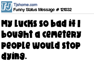 X My lucks so bad if I bought a cemetery people would stop dying.