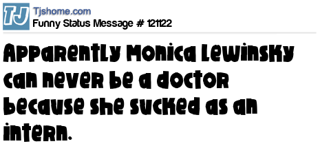 X is Apparently Monica Lewinsky can never be a doctor because she sucked as an intern.