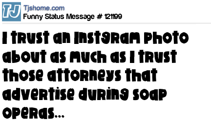 X says I trust an Instgram photo about as much as I trust those attorneys that advertise during soap operas...