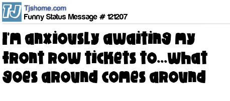 X I'm anxiously awaiting my front row tickets to...what goes around comes around