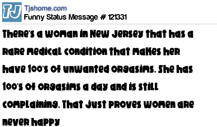 X  There's a woman in New Jersey that has a rare medical condition that makes her have 100's of unwanted orgasims. She has 100's of orgasims a day and is still complaining. That just proves women are never happy