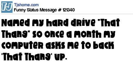 - # 43731 I changed the name of my hard drive to 'that thang,' so once a month, my computer asks me if I wanna back that that thang up.