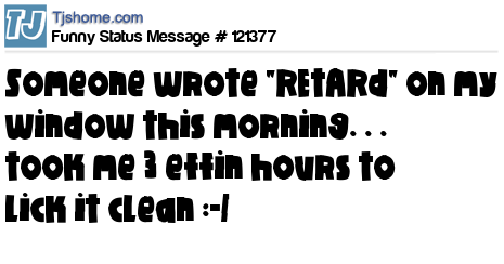 - # 104451 Someone wrote "retard" on my car window. Took me ages to lick it off