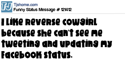 - # 121306 I like reverse cowgirl because he can't see me tweeting and updating my Facebook status.